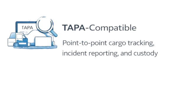 TAPA-Compatible:Point-to-point cargo tracking, incident reporting, and custody traceability.