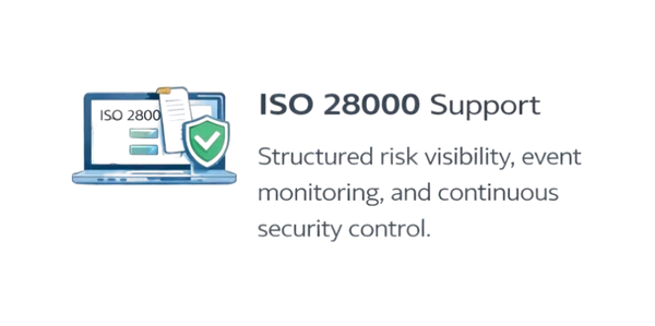 ISO 28000 Support: Structured risk visibility, event monitoring, and continuous security control.